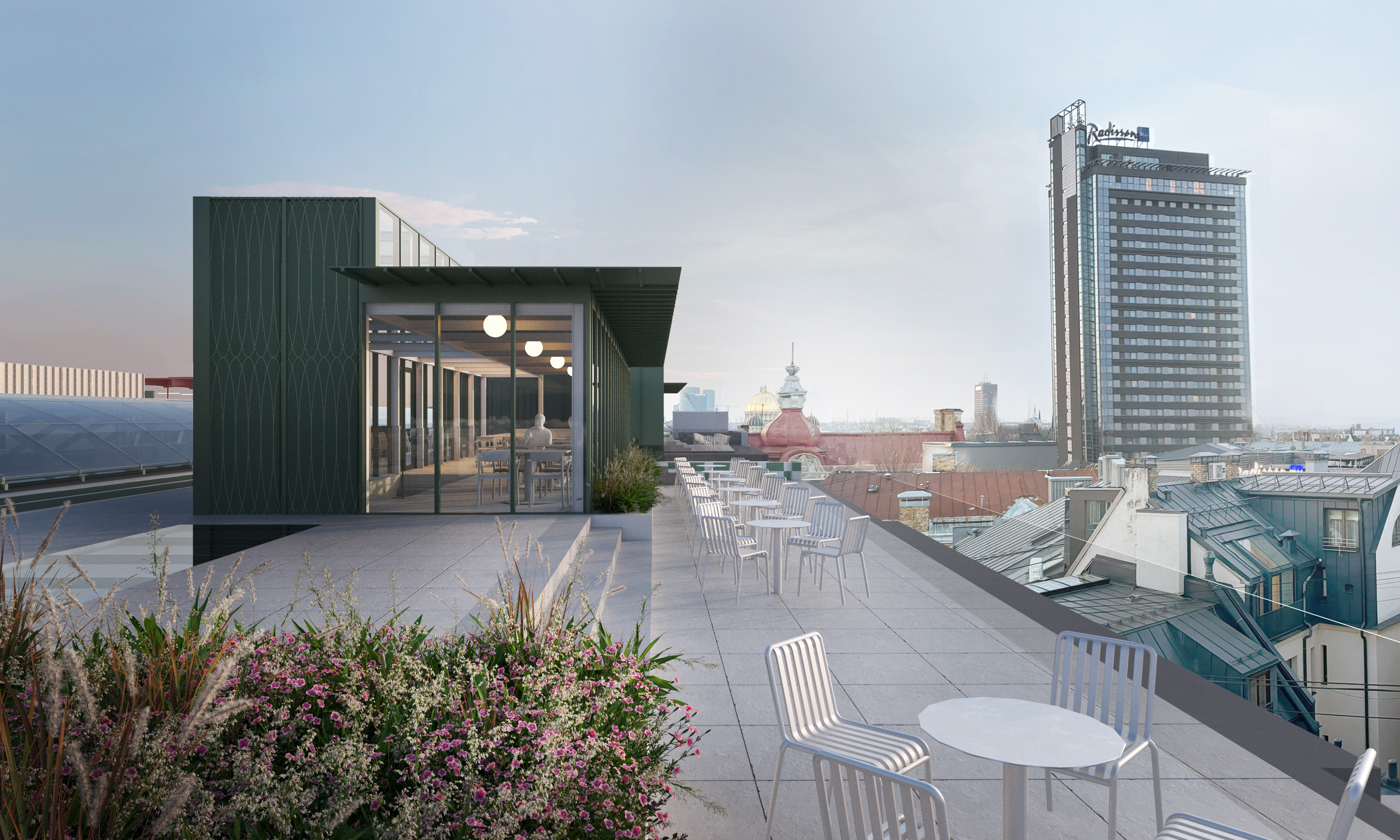 Being located in a UNESCO World Heritage area, the project is being developed with special respect for Riga's historic environment. The terrace will highlight one of the city's most significant cultural values – its historic roofscape.